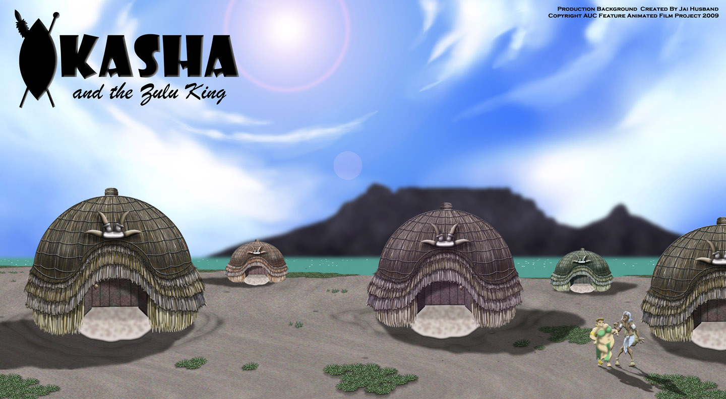 Digitally painted background of the Zulu village alleyway created by Jai Husband for feature, Kasha and the Zulu King